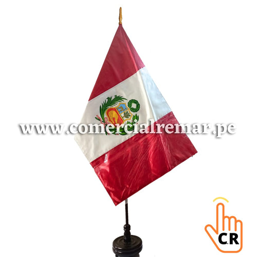 Bandera de Perú para Escritorio con Base y Asta de Aluminio